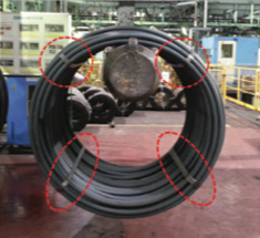 | Binding method | Wire Rod Coil produced is compressed under the designated pressure (13-20 tons) and binded using the Band for packaging | |